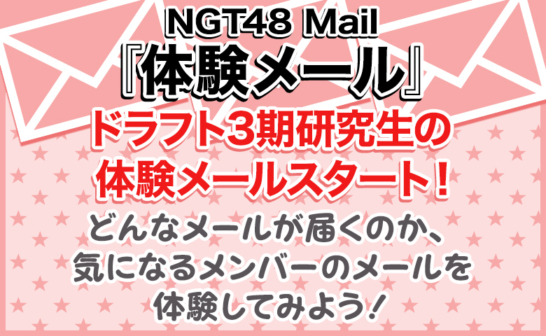 - ※「@sample.ngt48.com」「@mls.ngt48.com」「@ngt48.com」からのメールを受信できるように設定してください。